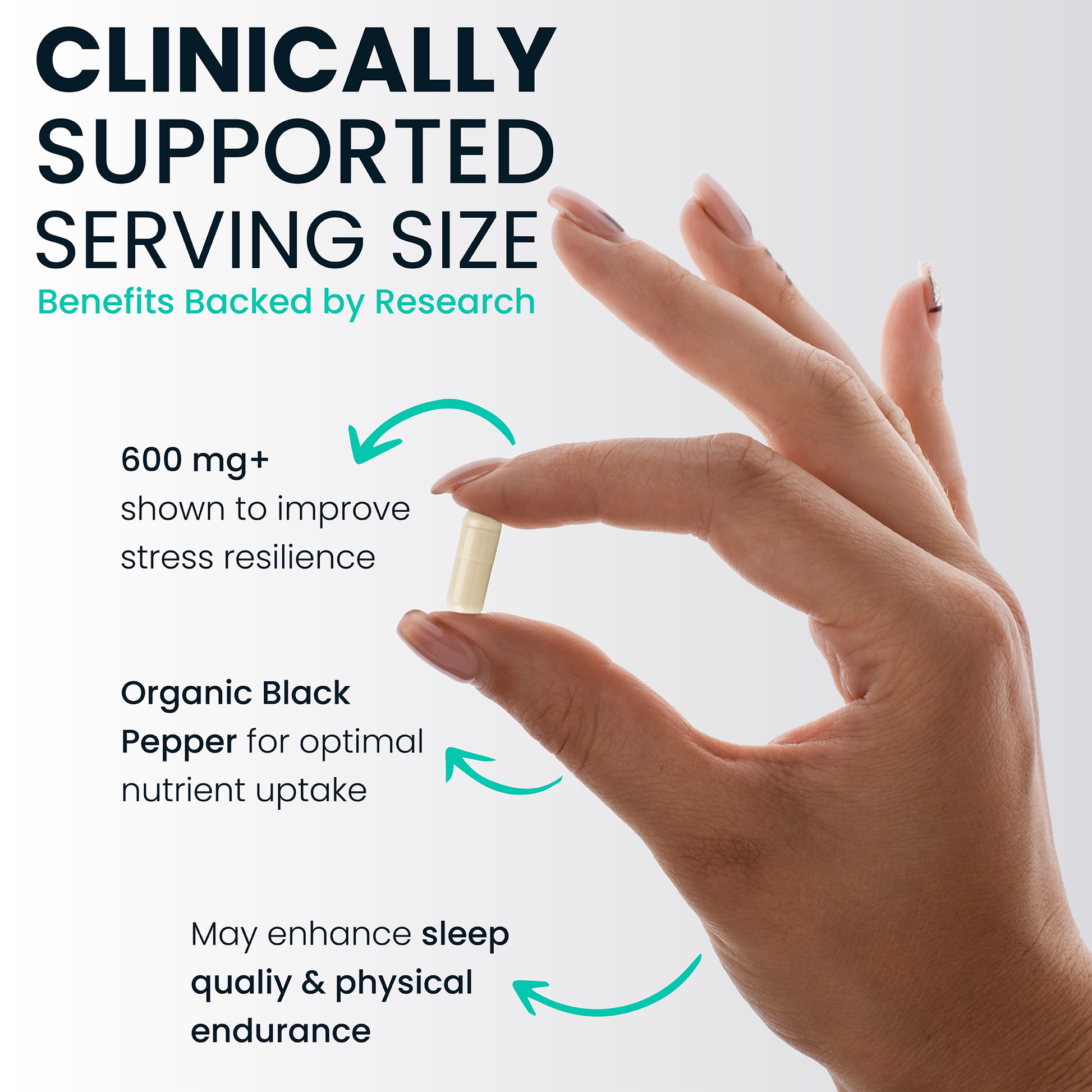 Daily Ashwagandha supplementation improves physiological, cognitive, and psychological stress response over 30 days.